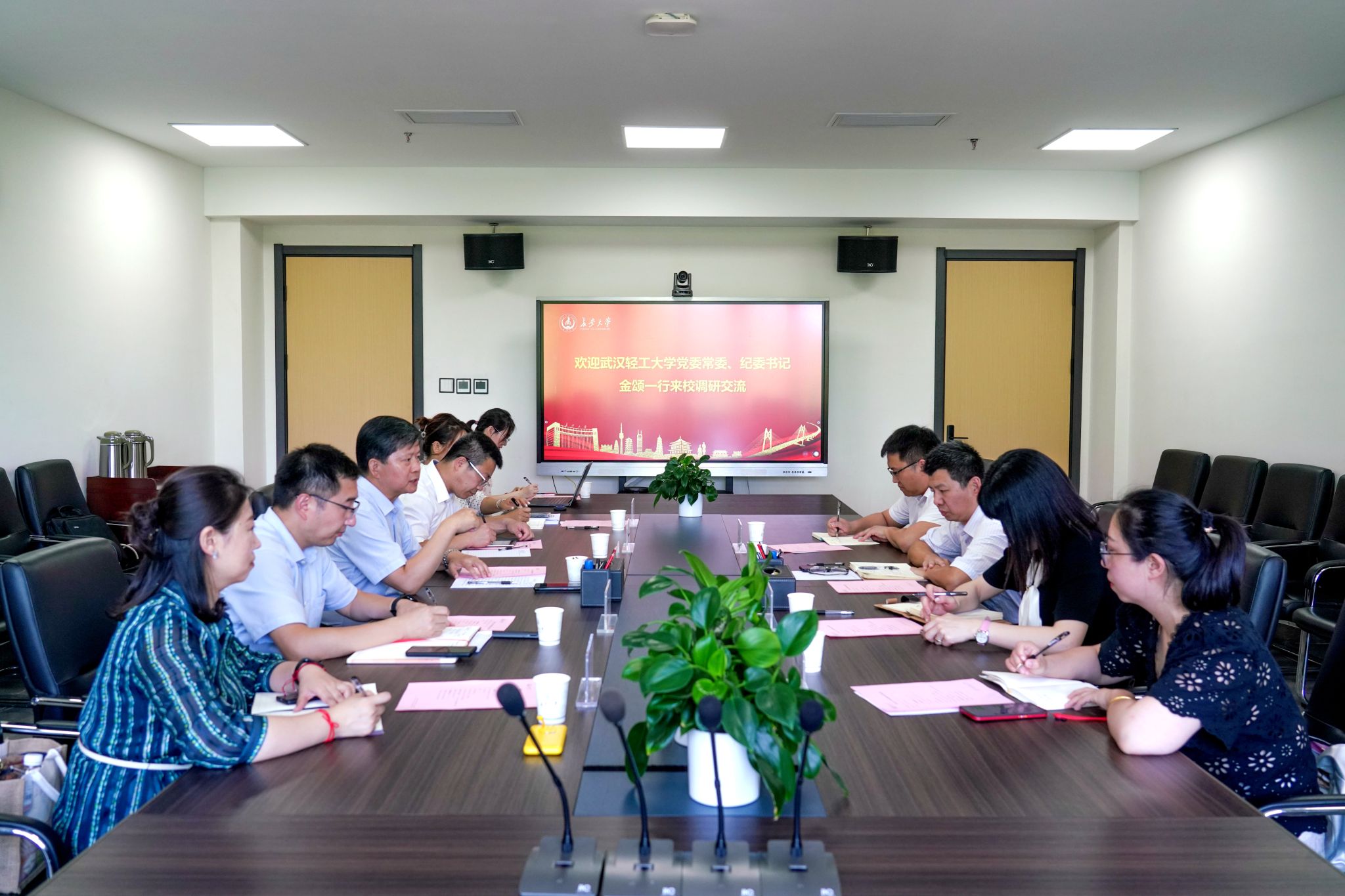 6月18日下午,武汉轻工大学党委常委、纪委书记金颂一行4人来校就学生工作开展调研交流。KY.COM党委副书记黎开谊出席座谈会,学工部、研工部相关负责人参加会议。会议由研工部部长高天智主持。