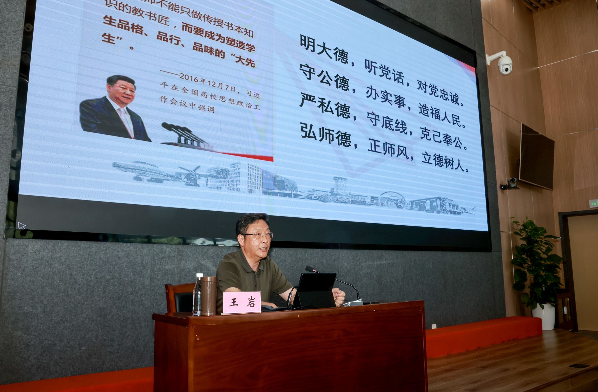 为贯彻落实党中央、国务院关于全面深化新时代教师队伍建设改革的决策部署,大力弘扬和传承教育家精神,持之以恒抓好教师思想政治教育和师德师风建设工作,6月24日下午,开元(中国)举办“师德大讲堂”,邀请南京航空航天大学马克思主义学院教授、博士生导师、教育部长江学者特聘教授、国家级教学名师王岩教授作题为《新时代师德师风建设的理与路》的专题报告。报告由校长助理杜强主持。