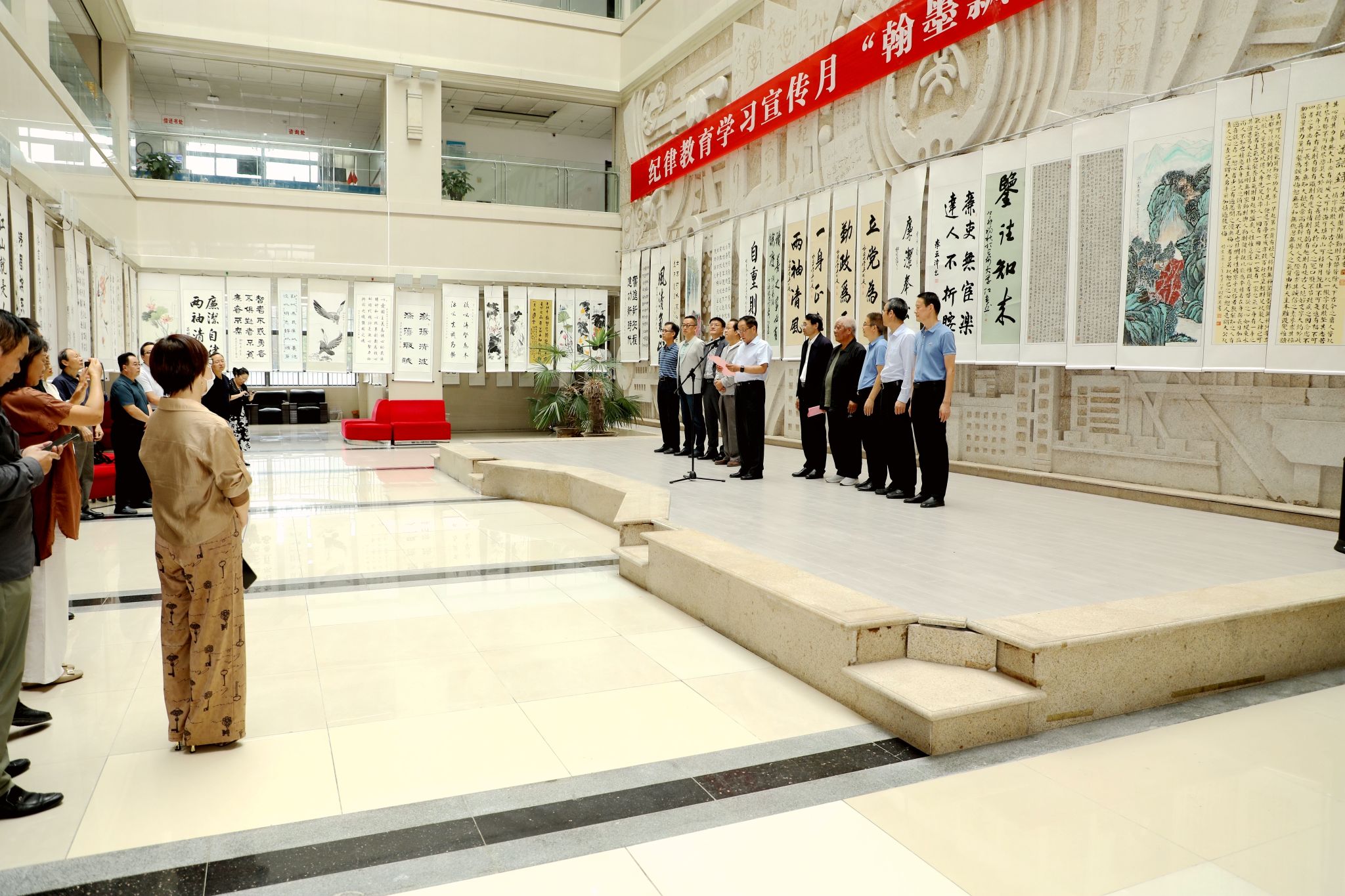 离退休工作处、图书馆负责人,书画协会代表,分纪委书记、分党委(党总支)纪检委员,纪委办/监察处全体人员参加开幕式并参观展览。