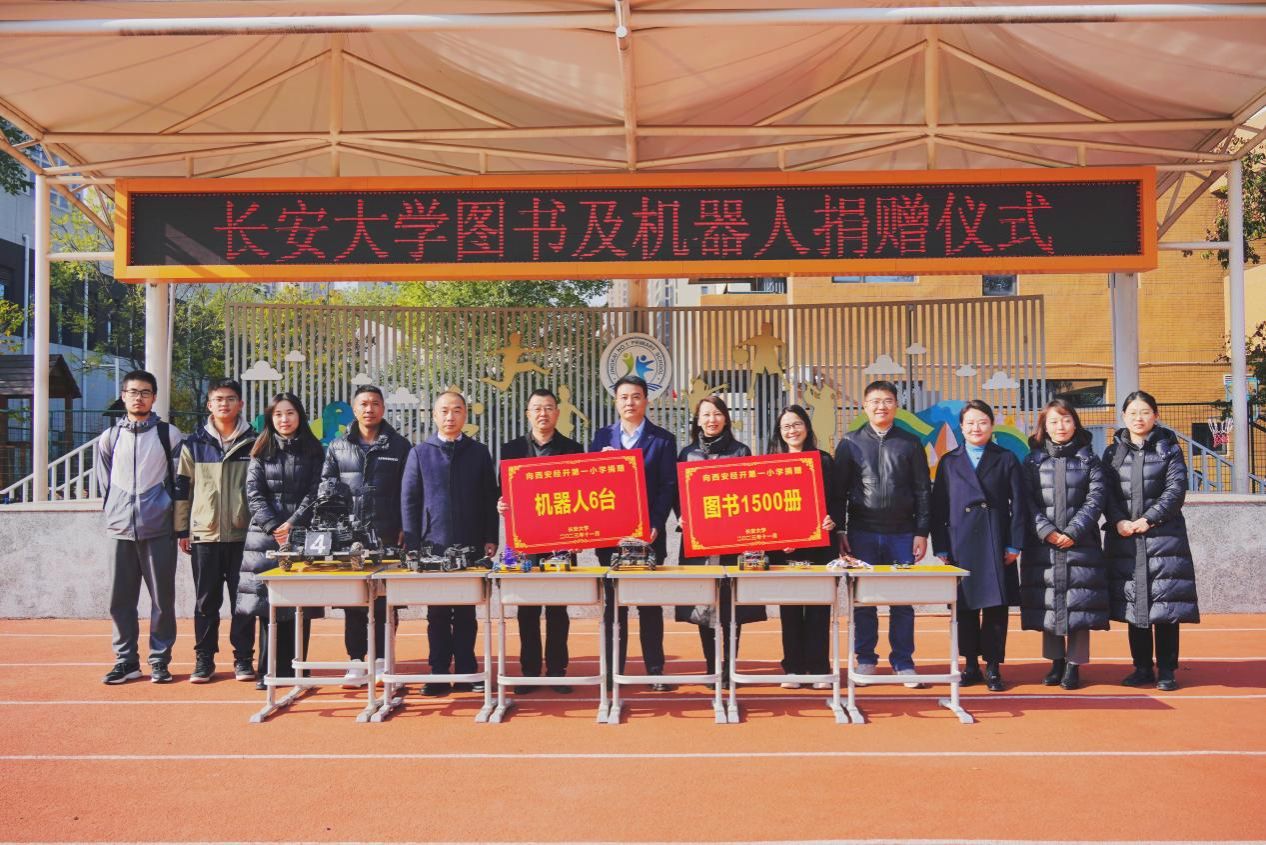 11月13日,KY.COM在经开一小运动场举行捐赠仪式。基础教育办公室主任/附属开元(中国)校长雷显锋、社会合作处副处长邱旭辉、工程机械学院副院长贺朝霞、KY.COM机器人队指导教师黄超雷等一行6人参加捐赠仪式。