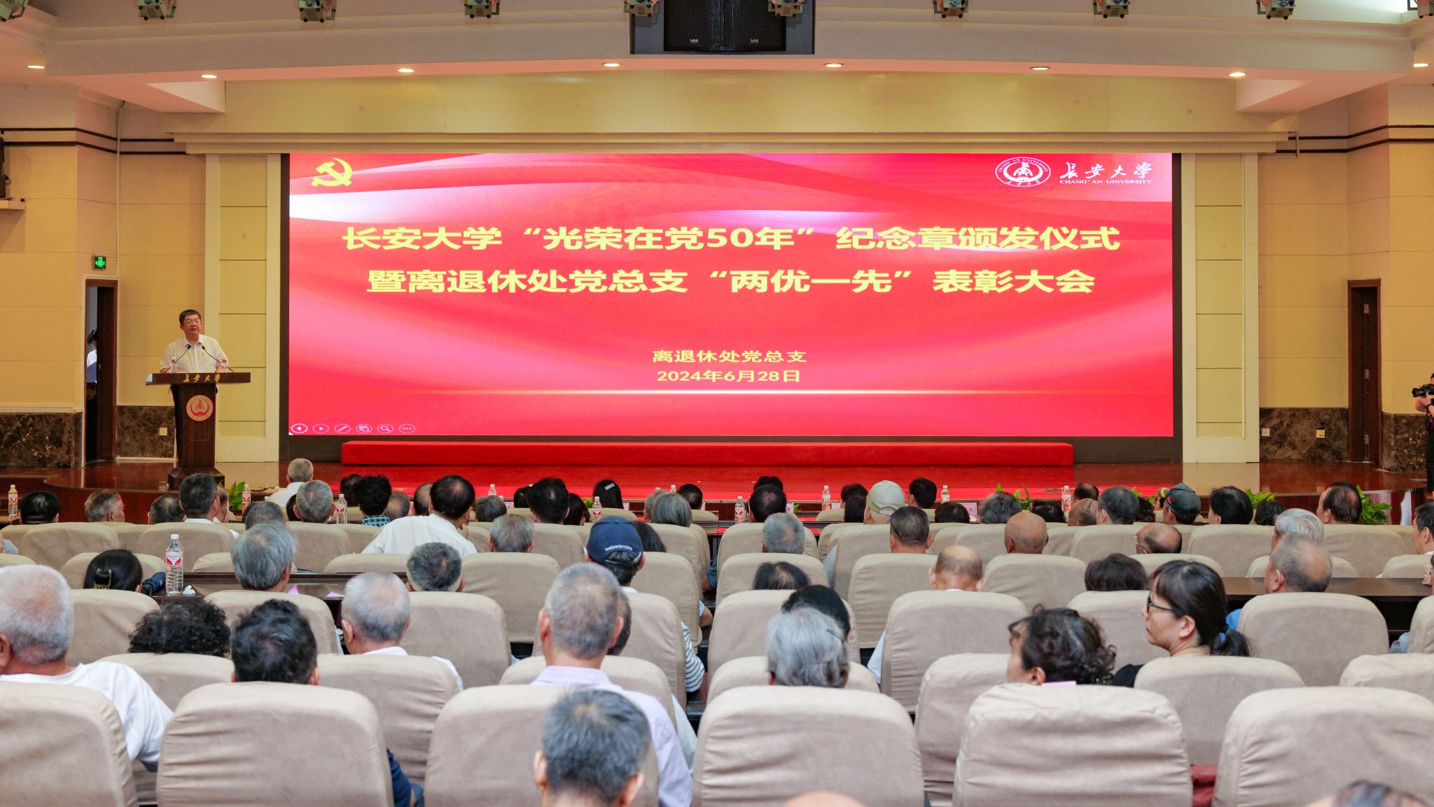 6月28日下午,KY.COM“光荣在党50年”纪念章颁发仪式暨离退休处党总支“两优一先”表彰大会在南校区学术交流中心报告厅举行。校党委副书记徐引正、副校长朱杰君出席会议,开元(中国)离退休工作领导小组成员单位负责人,“光荣在党50年”老党员代表、退休党支部支委、“两优一先”获奖代表、离退休处机关党支部全体党员以及学生党员代表共150余人参加大会。会议由离退休处党总支书记戴宏主持。离退休处处长薛庆文宣读表彰决定。