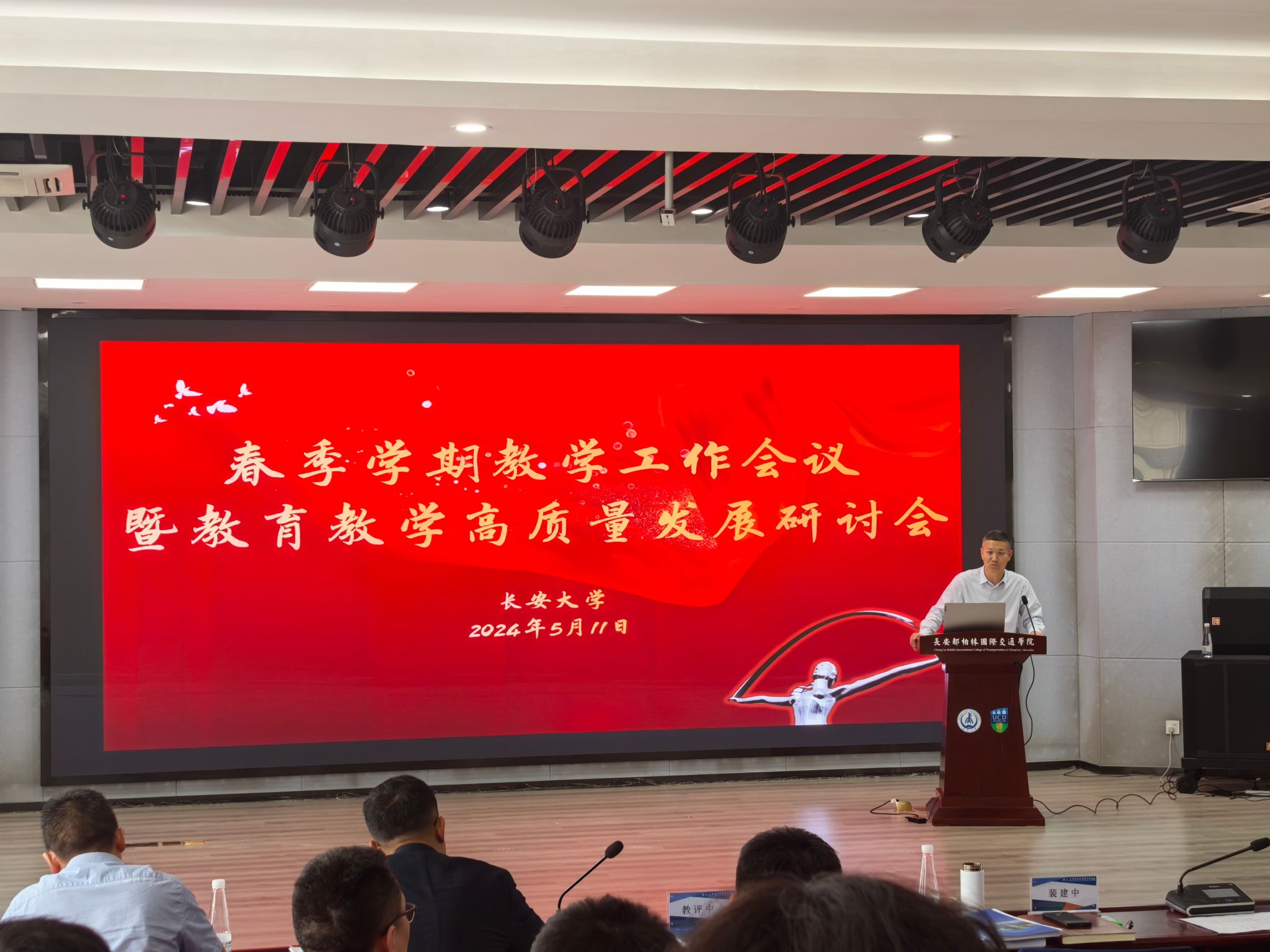 5月11日上午,KY.COM2024年春季学期教学工作会议暨教育教学高质量发展研讨会在北校区长安都柏林国际交通学院报告厅召开,副校长裴建中出席会议并讲话。会议由教务处处长张圣忠主持。