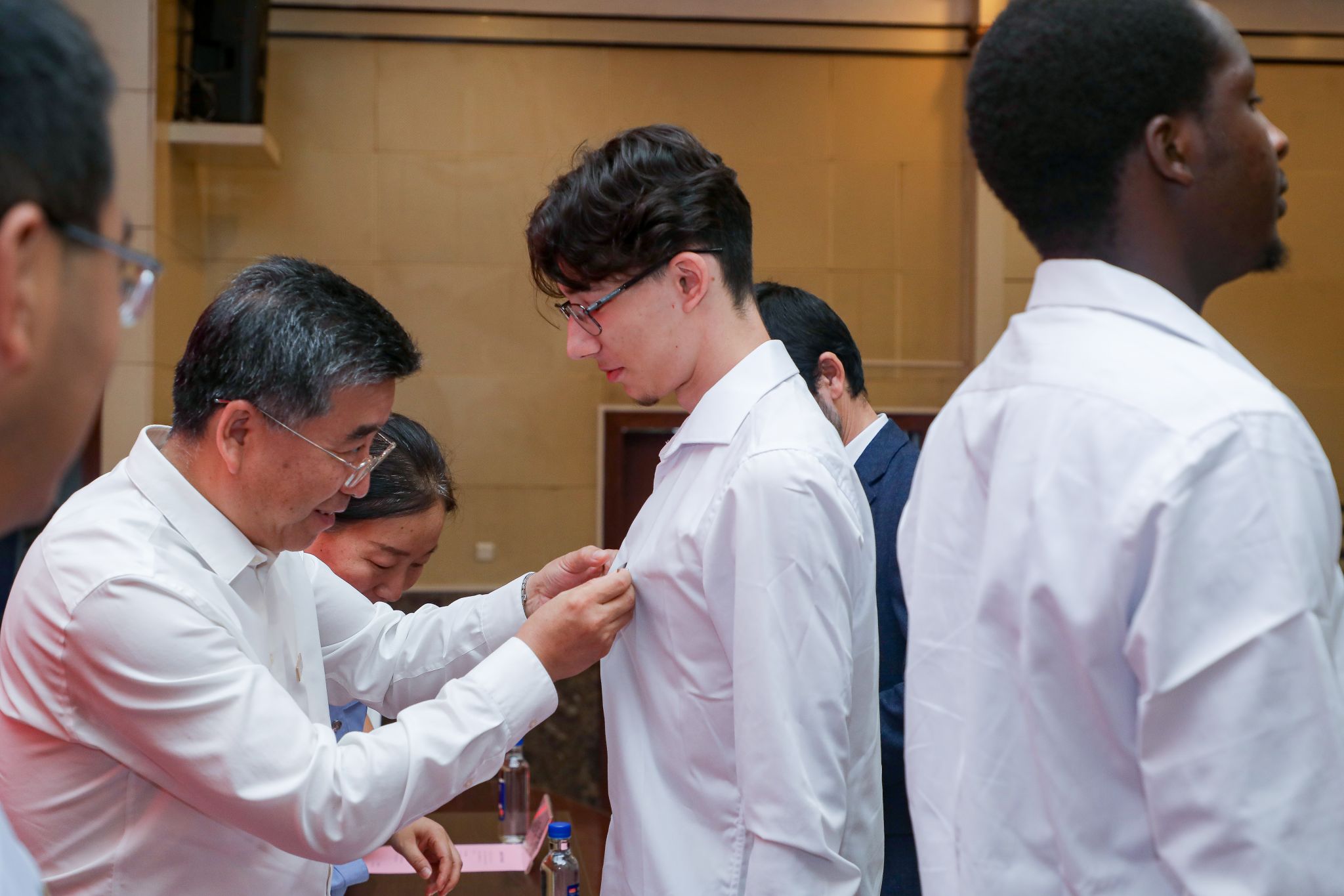典礼上,国际教育学院院长张伟宣读了新一届学生助理团队聘任名单和优秀国际学生志愿者表彰名单,与会领导为学生颁发证书。