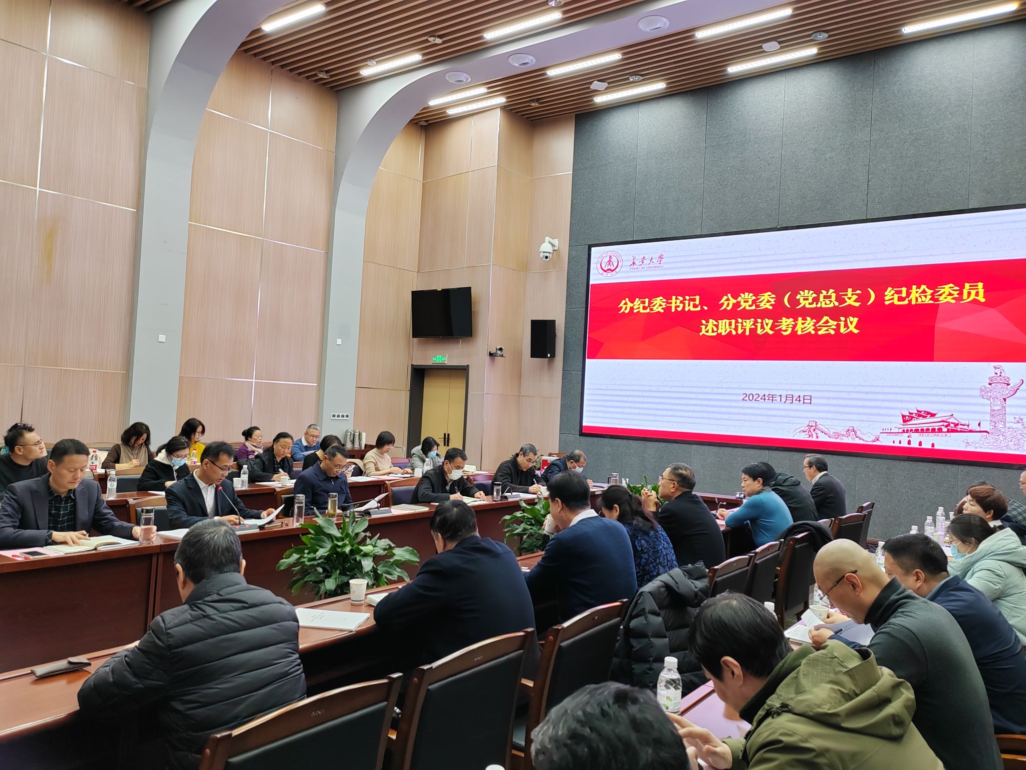 陶继东对述职情况进行了点评和总结,对各分纪委书记、分党委(党总支)纪检委员的工作给予了充分肯定,并对进一步落实分纪委书记、分党委(党总支)纪检委员监督责任提出四点要求。一是继续在“学”上下功夫,深入领会习近平新时代中国特色社会主义思想,有针对性地补短板、强弱项,着力破解不愿监督、不敢监督、不会监督难题;二是继续在“敢”上下功夫,增强主动监督的自觉性,切实把监督挺在前面、抓早抓小、防微杜渐,做实做细同级监督,加强对“一把手”和领导班子的监督;三是继续在“谋”上下功夫,统筹“当下治”与“长久立”,推动堵塞漏洞、深化改革、完善制度,充分发挥监督保障执行、促进完善发展作用;四是要继续在“深”上下功夫,积极打造富有特色、师生参与度广的廉洁文化品牌,将廉洁元素融入大思政育人格局,构建全覆盖、多层次的廉洁教育体系。