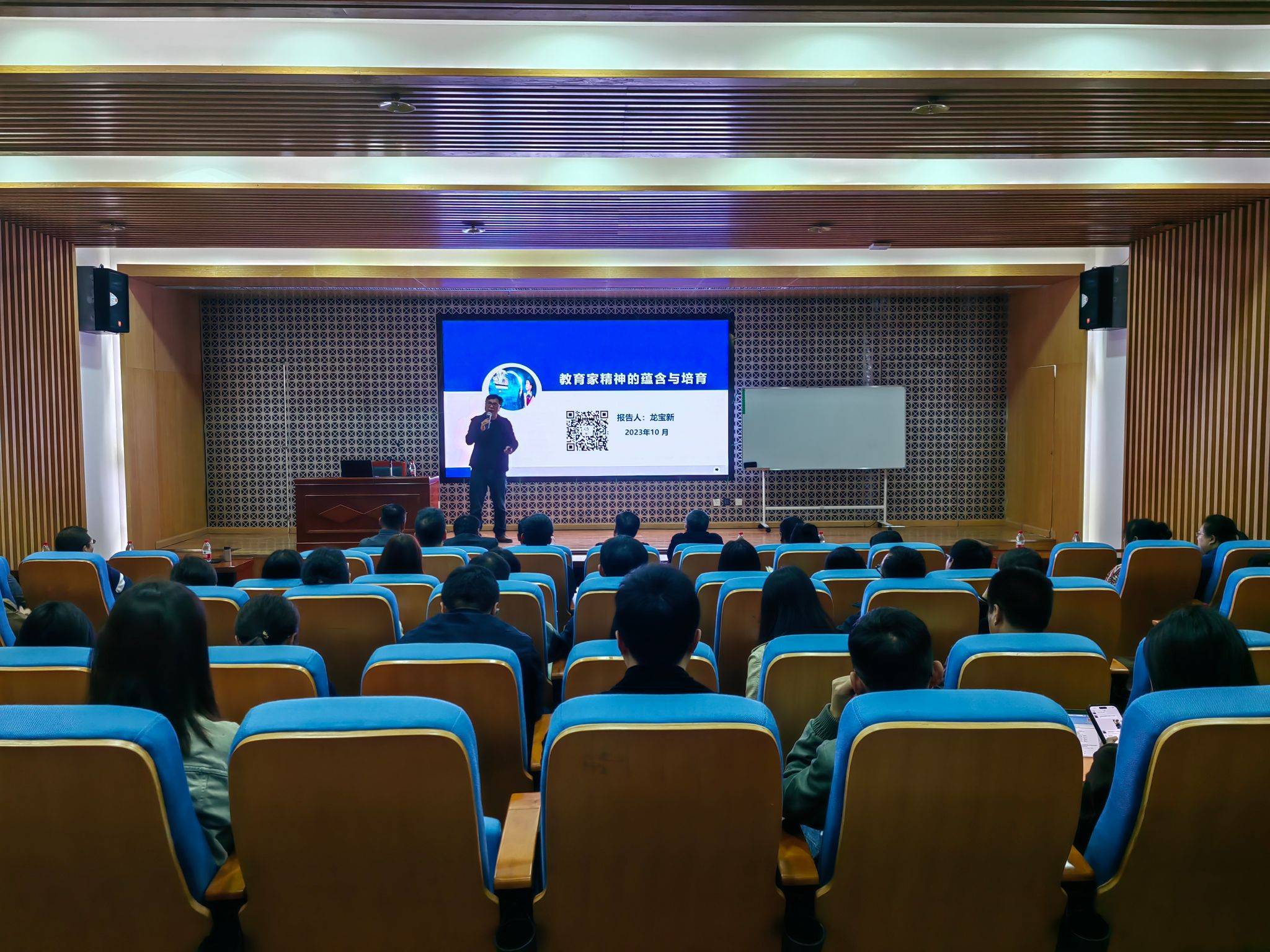 陕西师范大学民族教育学院院长龙宝新教授受邀在机关青年论坛第五期作《教育家精神的蕴含与培育》专题辅导报告。龙宝新教授围绕历史上的教育家、中国特有的教育家精神、教育家精神的培育对教育家精神进行了生动的解读与阐释。