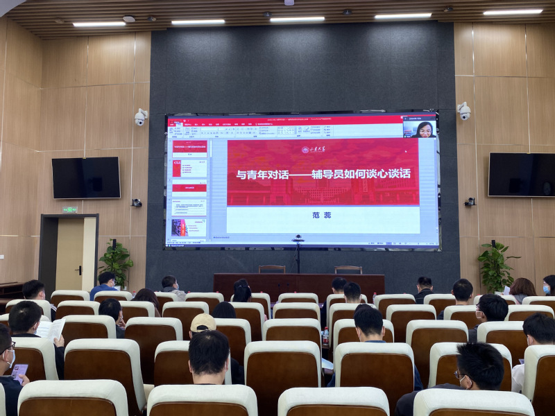 来自各院(系)30余名学办主任和团委书记到场聆听,100余名辅导员通过在线会议平台参加培训。