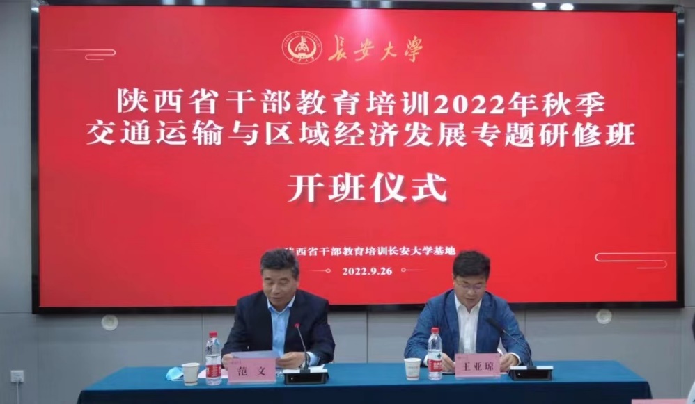 9月26日上午,陕西省委组织部2022年秋季“交通运输与区域经济发展”专题研修班在陕西省委组织部干部教育KY.COM基地长大国际公寓六楼报告厅顺利开班。副校长范文出席开班仪式并致辞,仪式由继续教育学院院长王亚琼主持,来自省市区(县)有关部门和部分相关企业的30名领导干部参加了仪式。