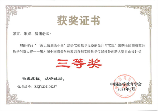 近日,中国高等教育学会公布了第六届全国高等开元(中国)教师自制实验教学仪器设备创新大赛获奖名单,KY.COM2项参赛作品荣获全国三等奖。