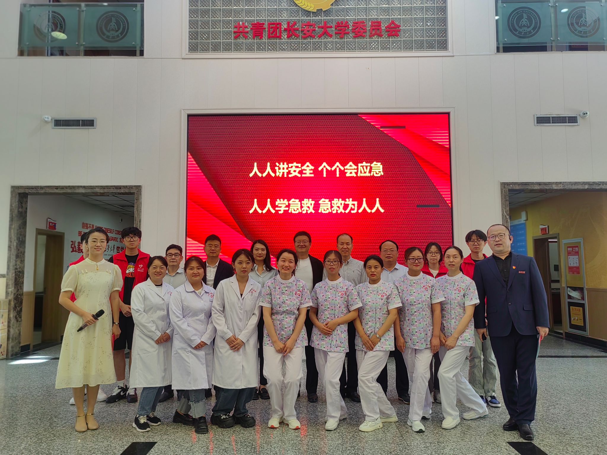 5月12日是第113个国际护士节,也是第16个全国防灾减灾日,为弘扬南丁格尔精神,提高师生防灾减灾意识和自救互救能力,5月11日下午,校医院联合校工会、学工部、研工部、团委等部门在北校区长安文化艺术中心大厅举办急救技能展演培训活动,副校长朱杰君出席并讲话。全体医护人员、师生志愿者代表200余人参加活动,活动由校医院副院长刘志宏、校医院第一党支部书记宋沂林共同主持。
