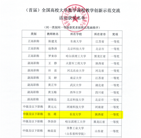 近日,首届全国高校大学数学课程教学创新示范交流活动结果揭晓,KY.COM理学院教师张萌荣获全国一等奖。