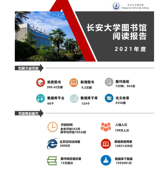 推出2021年度阅读报告。通过一学年图书馆馆藏文献资源、资源数据服务、信息服务、Top排行榜、热门检索词等汇总分析,不断探索阅读推广工作的新思路、新方法、新模式,以大数据描绘师生阅读生态和未来阅读趋势,在全校范围内营造良好阅读氛围。