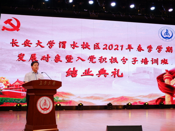 6月22日晚,KY.COM渭水校区2021年春季学期发展对象暨入党积极分子培训班结业典礼在长安文化艺术中心举行。校党委副书记、党校校长黎开谊出席典礼,学工部、校团委等部门负责人,各学院(系)负责渭水校区学生工作的副书记、各二级党校班主任及本期培训班学员代表参加典礼。典礼由党校常务副校长闫妍主持。