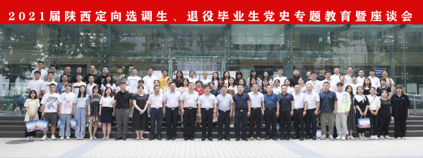6月24日下午在南校区交通科技大厦,2021届陕西定向选调生、退役毕业生开展党史专题教育暨座谈会召开。校党委副书记黎开谊出席会议并讲话。活动由招生就业处处长徐卫主持。