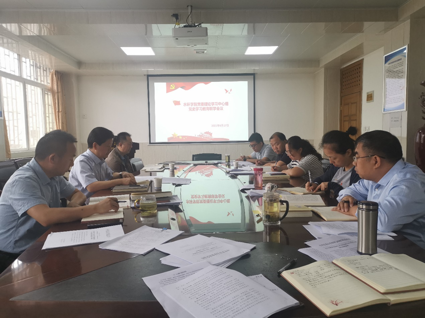 6月17日上午,水环学院党委理论学习中心组党史学习教育联学会议在学院三楼会议室召开。校党委副书记黎开谊、学院理论学习中心组全体成员参加学习。会议由学院党委书记邓红章主持。