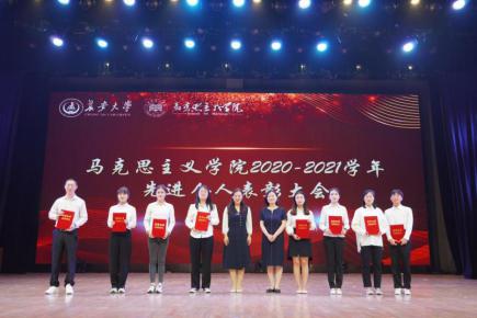 大会在雄壮的国歌声中拉开帷幕。马克思主义学院党委书记李小芹致辞,她以“信念、信仰”“使命、担当”“责任、重任”三组关键词与全体师生共勉,希望广大师生能在党史学习中汲取奋进力量,更好地发挥思想政治教育主渠道的作用,努力将马克思主义学院建设成思想理论的高地、学术研究的高地、铸魂育人的高地。马克思主义学院院长陈怀平、副院长王立洲分别宣读表彰决定及表彰名单,出席嘉宾为“优秀学生党员”“学习标兵”“优秀学生干部”获奖学生代表颁奖。