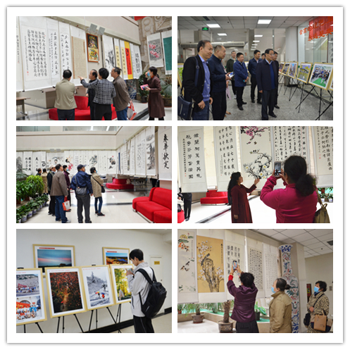 开幕式后,与会领导和嘉宾观看了展出的各类书画和摄影作品。此次展出将持续到4月23日,欢迎广大校友、师生和离退休老同志参观。