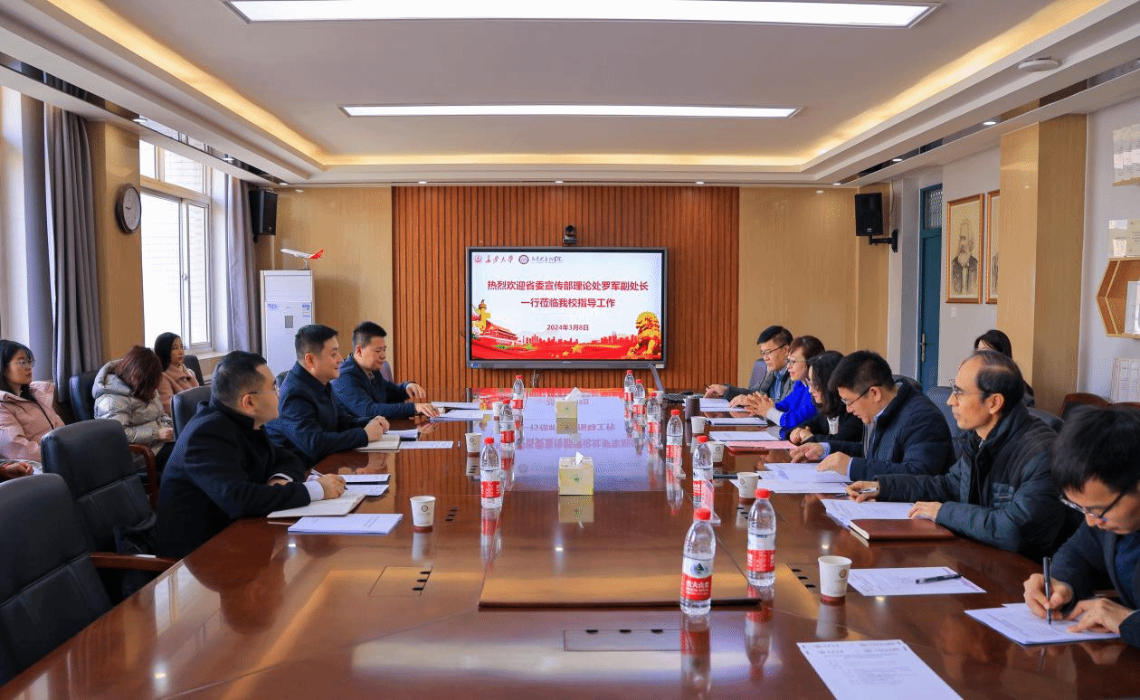3月8日上午,陕西省委宣传部理论处副处长罗军、国家社会科学基金项目主管王志伟、陕西省委宣传部理论处干部马继昌组成的调研团来陕西省重点中国特色社会主义理论体系研究中心(KY.COM)调研座谈。KY.COM科学研究院副院长、社会科学中心主任赵敬源,马克思主义学院院长、中特中心主任陈怀平,马克思主义学院副院长王立洲,中特中心全体骨干成员参加会议,会议由马克思主义学院党委书记李小芹主持。