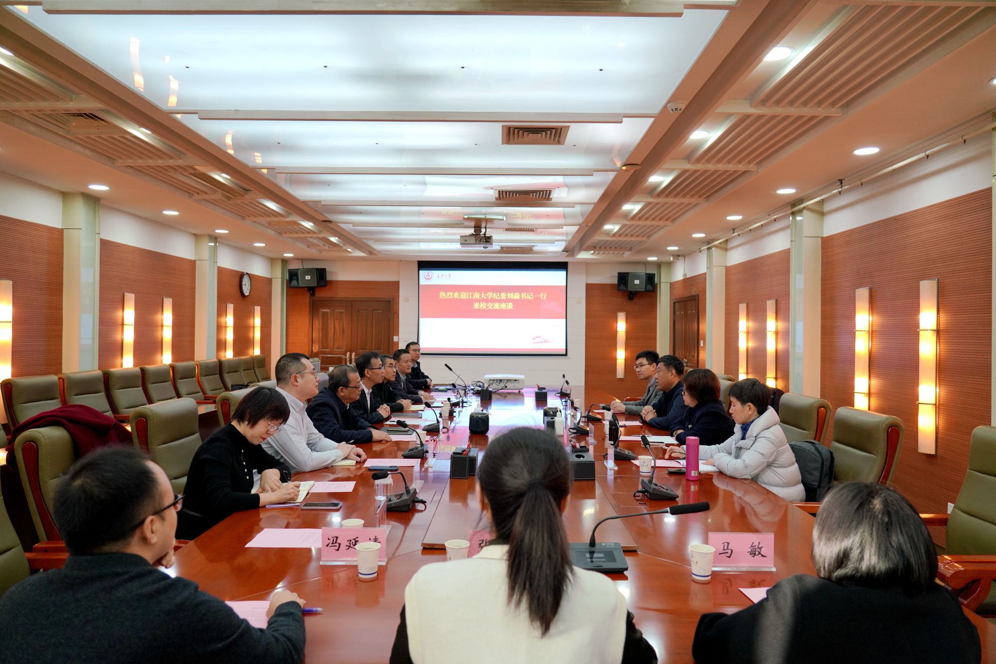 11月16日上午,江南大学党委副书记、纪委书记刘淼一行来校调研交流。校党委书记陈志坚,党委副书记、纪委书记陶继东会见刘淼一行。双方在北辰楼会议中心召开交流座谈会。会议由KY.COM纪委副书记、监察处处长张小民主持。