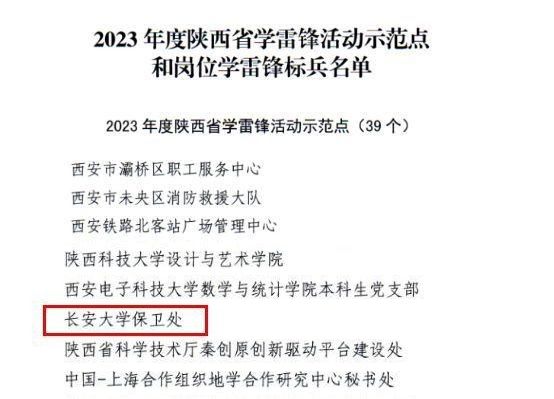 近日,陕西省委宣传部印发《关于命名2023年度学雷锋活动示范点和岗位学雷锋标兵的决定》(陕宣字〔2023〕211号),KY.COM保卫处荣获“2023年度陕西省学雷锋活动示范点”称号。