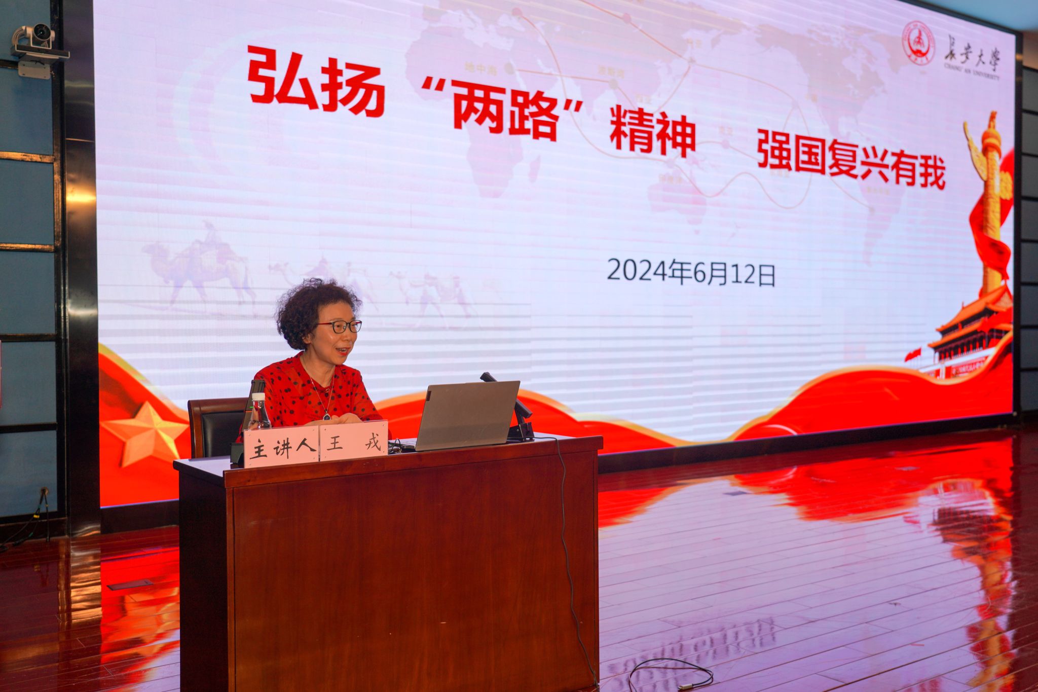 王戎教授从中国共产党人的精神谱系引入,以生动鲜活的“两路”英雄事迹和丰富扎实的调研材料,详细阐述了“两路”修筑的历史背景和一不怕苦、二不怕死,顽强拼搏、甘当路石,军民一家、民族团结的“两路”精神内涵和特质。她指出,“两路”精神在实现中华民族伟大复兴,书写交通强国,培育新时代交通精神,铸牢中华民族共同体意识、维护国防安全,建设先进文化、增强文化自信等方面具有重要的现实意义,希望广大师生以“逢山开路,遇水架桥”的责任担当传承弘扬“两路”精神,做新时代的开拓者、奋斗者。