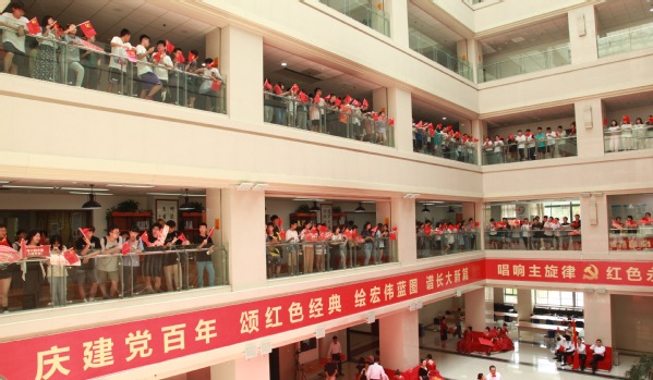 为庆祝中国共产党成立100周年,落实开元(中国)《关于在党史学习教育中开展“五个一百”工程的通知》精神,7月1日下午图书馆在北校区举办“庆建党百年,颂红色经典”主题活动。校党委副书记、副校长彪晓红,校党委常委、统战部部长王耀文,图书馆党政负责人和党员、民主党派、职工代表、近400名学生参加了本次活动。活动由馆长赵文义主持。