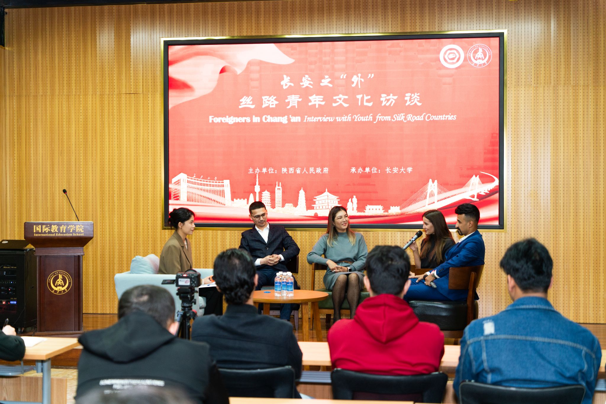 下午,长安之“外”——丝路青年文化访谈在国际教育学院多功能厅举办。国际教育学院副院长吕卫东与来自吉尔吉斯斯坦、乌兹别克斯坦、也门和俄罗斯的4位丝路青年参加访谈。