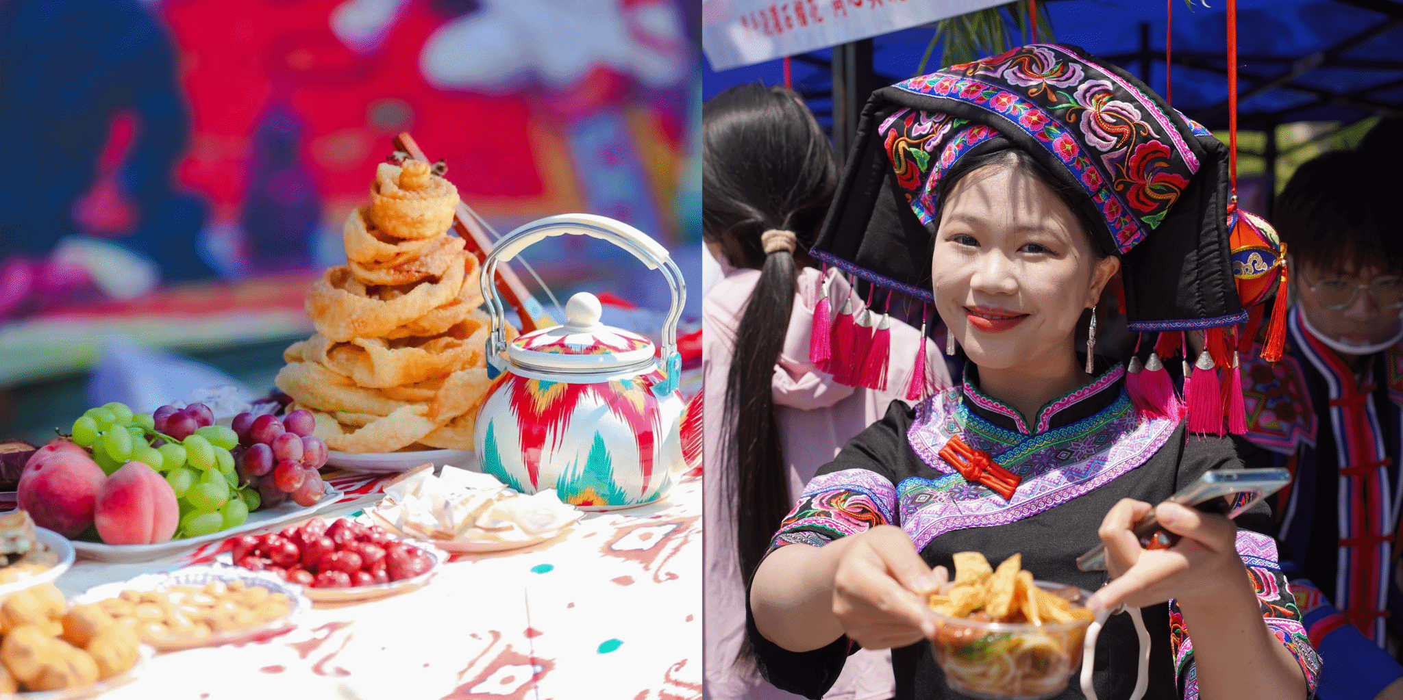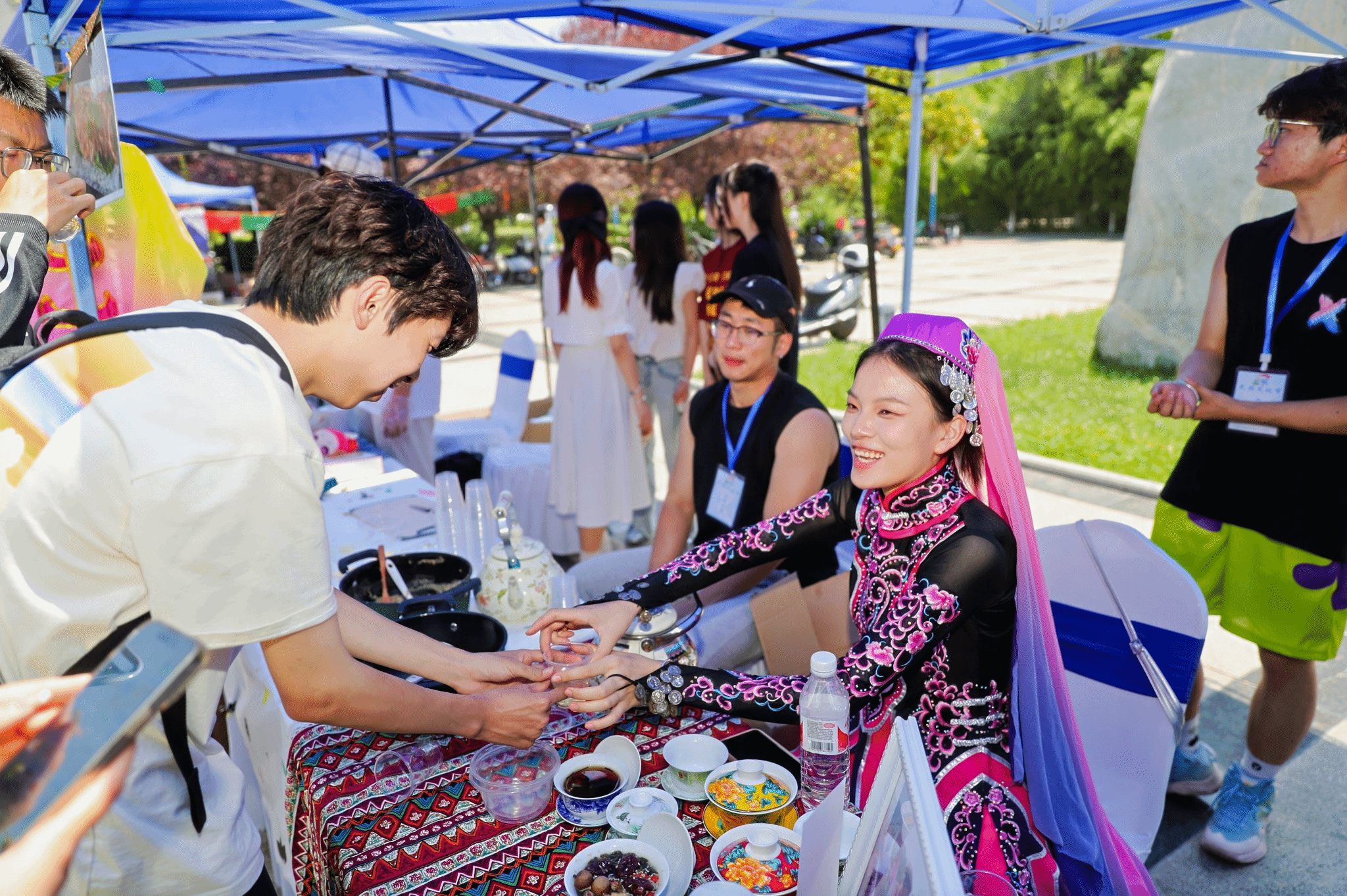 本届民族文化节设置了民族文化展示体验区,展示民族特色服饰文化,参与民族特色游戏,体验民族特色美食。各民族服饰、美食、器乐以及工艺品令师生纷纷驻足。丰富多彩的互动体验让现场师生充分领略了中华民族优秀传统文化的独特魅力和博大多元。