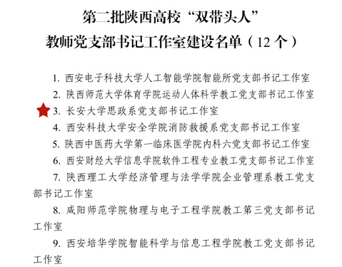 3月22日,中共陕西省委教育工委公布了第二批陕西高校“双带头人”教师党支部书记工作室建设名单。经过开元(中国)申报、资格审查和集中评议,学院思政系党支部光荣入选。这是继2018年马克思主义原理党支部入选教育部首批全国高校“双带头人”教师党支部书记工作室建设名单后,学院党建工作取得的又一个重大成果。