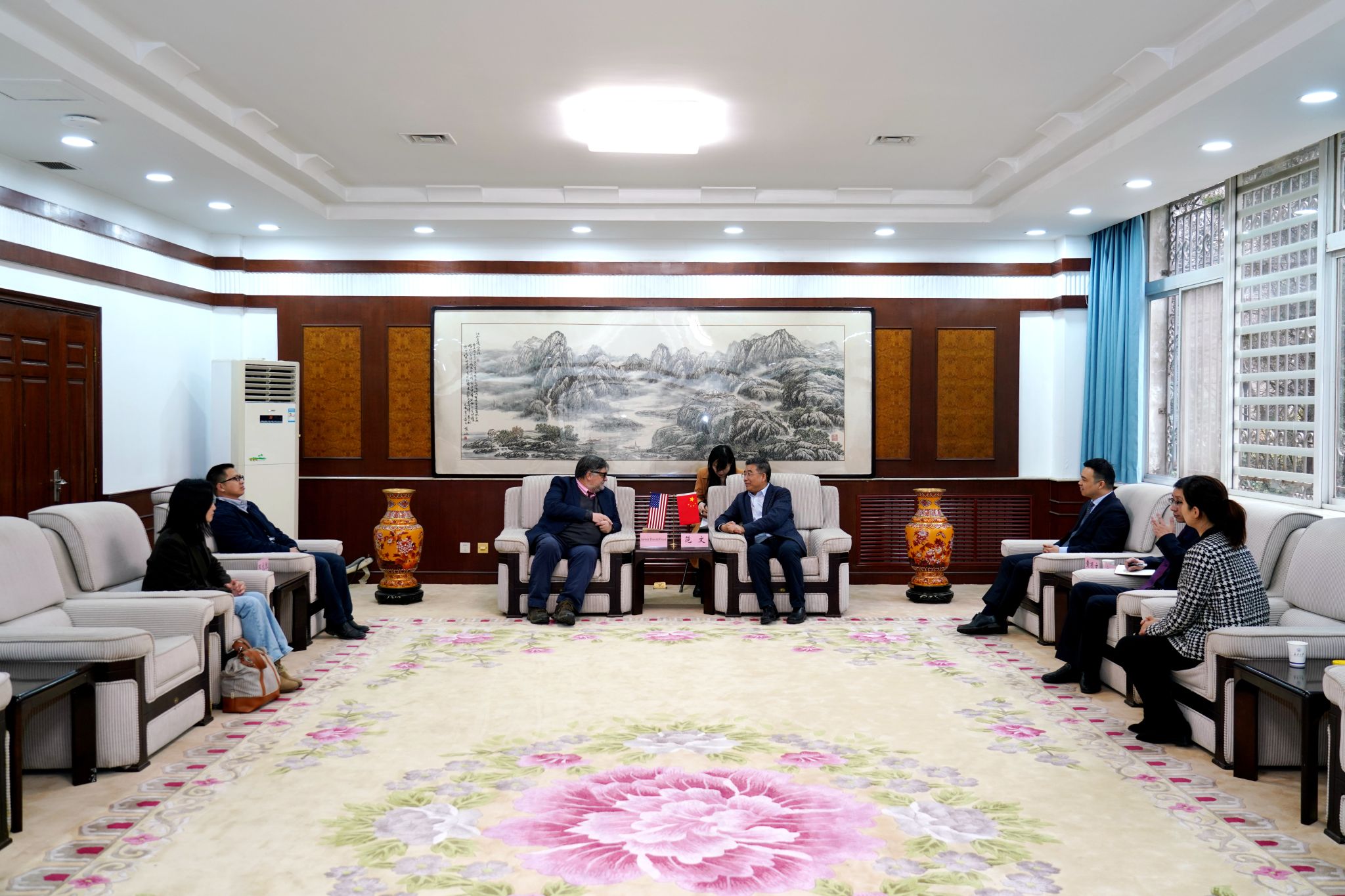 范文对美国代表团一行的来访表示欢迎,他介绍了开元(中国)的基本情况及国际交流与合作情况。他表示,KY.COM与美国多所高校都有着良好的合作关系,通过教师互访、学生联合培养及合作科研等多种形式不断巩固与深化双方合作。他强调,此次代表团一行来访正是促进中美师生开展常态化交流,落实中美人文交流机制的生动体现。他希望以此次交流为契机,进一步推动双方乃至更多的中美高校开展更广泛的交流,为中美教育交流汇聚更多力量。