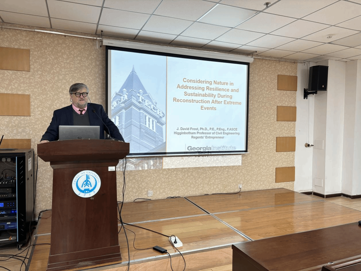 代表团来访期间,James David Frost教授应邀为KY.COM地学领域师生做了题为《Considering nature in addressing resilience and sustainability during reconstruction after extreme events》的学术报告,与与会师生开展了深入交流。