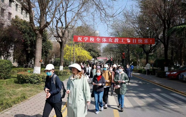 活动中,女教职工们沐浴着温暖的春光,迈着稳健的步伐个个神采奕奕,各分会列队出发攀谈健走的队伍在校园里形成一道靓丽的风景线,她们欢快轻盈的步伐、爽朗开心的笑声不时回荡在美丽的校园。她们用脚步丈量校园美景的同时,在活动中通过沿途打卡、合影留念享受节日的快乐,充分展现出KY.COM女同胞们蓬勃向上、积极进取的巾帼风采。