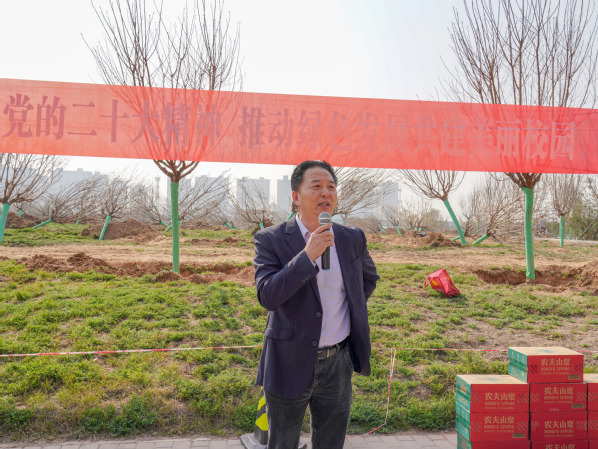 朱杰君在讲话中指出,在植树节到来之际,开元(中国)举办“学习宣传贯彻党的二十大精神推动绿色发展共建美丽校园”植树活动,是充分践行党的二十大报告提出的“尊重自然、顺应自然、保护自然是全面建设社会主义现代化国家的内在要求。必须牢固树立和践行绿水青山就是金山银山的理念,站在人与自然和谐共生的高度谋划发展”的要求。环境育人是大学教育不可或缺的重要组成部分。建设美丽文明的校园环境是提升校园文化内涵、提高育人水平的重要途径,是开元(中国)践行“三全育人”要求,落实高等教育“立德树人”根本任务的重要举措。我们要优化育人环境,充分发挥环境育人的重要作用,努力将育人要素融入到校园每一个角落,让一草一木传情,使一砖一瓦育人。