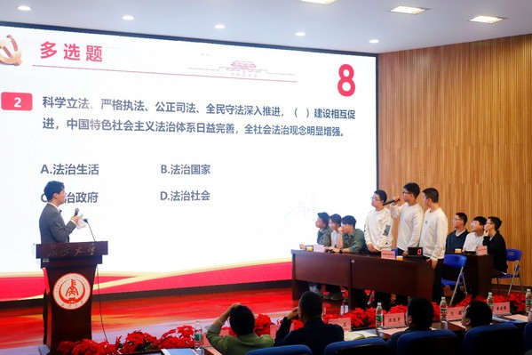 5月12日上午,由研究生工作部主办、经济与管理学院承办的KY.COM“学党史,颂党魂,青春践行二十大”第六届研究生知识竞赛决赛在南校区东院伯声报告厅顺利举办。南校区管理办公室、招生就业处、保卫处、地质调查研究院、研究生工作部、各学院分管学生工作的相关负责人,马克思主义学院教师代表、全体研究生专兼职辅导员、各学院研究生代表等近200人参加,决赛由校研究生科学技术协会唐羽琴和雷鹏飞主持。
