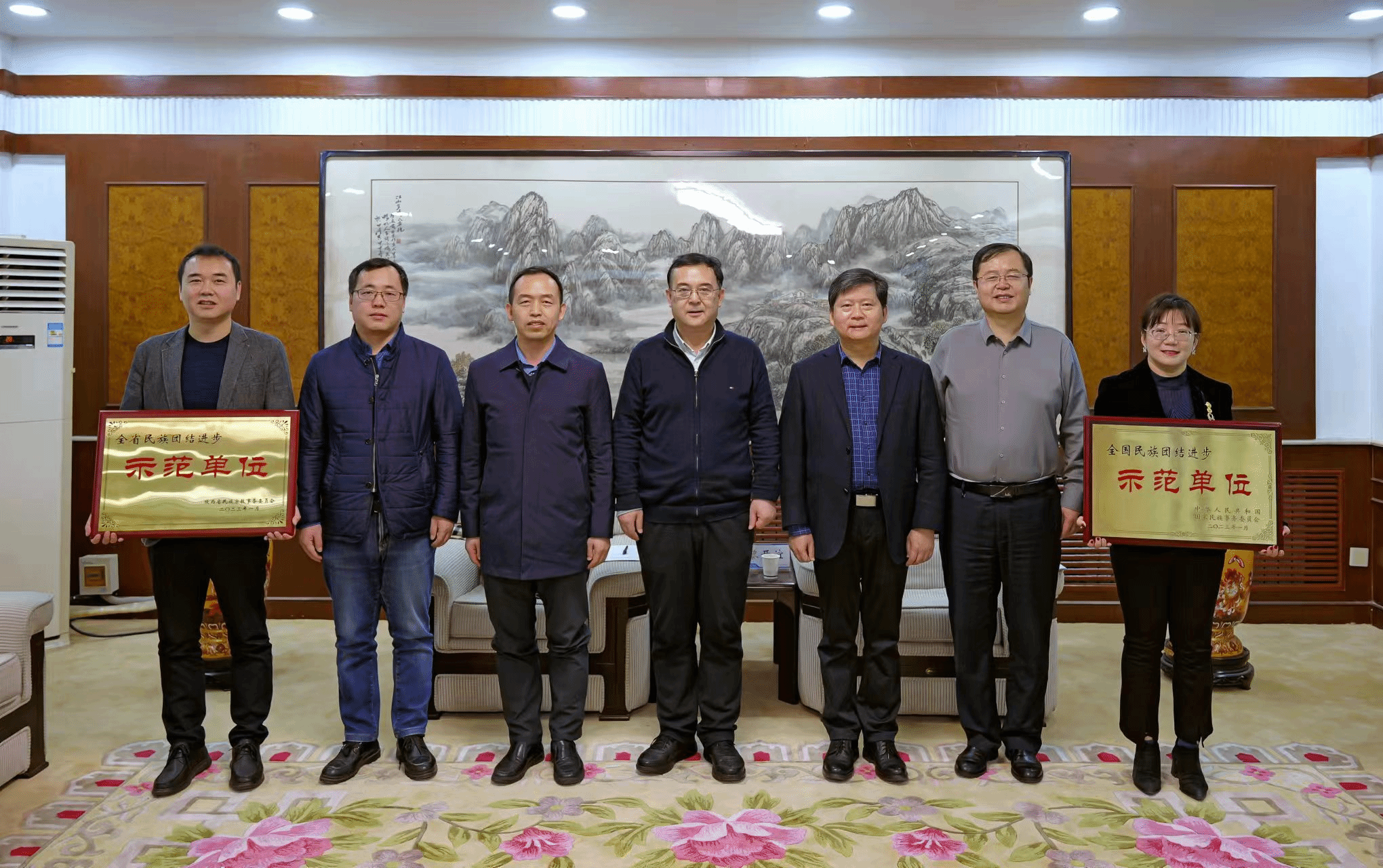 王晓斐向开元(中国)授予“全国民族团结进步示范单位”“全省民族团结进步示范单位”牌匾。