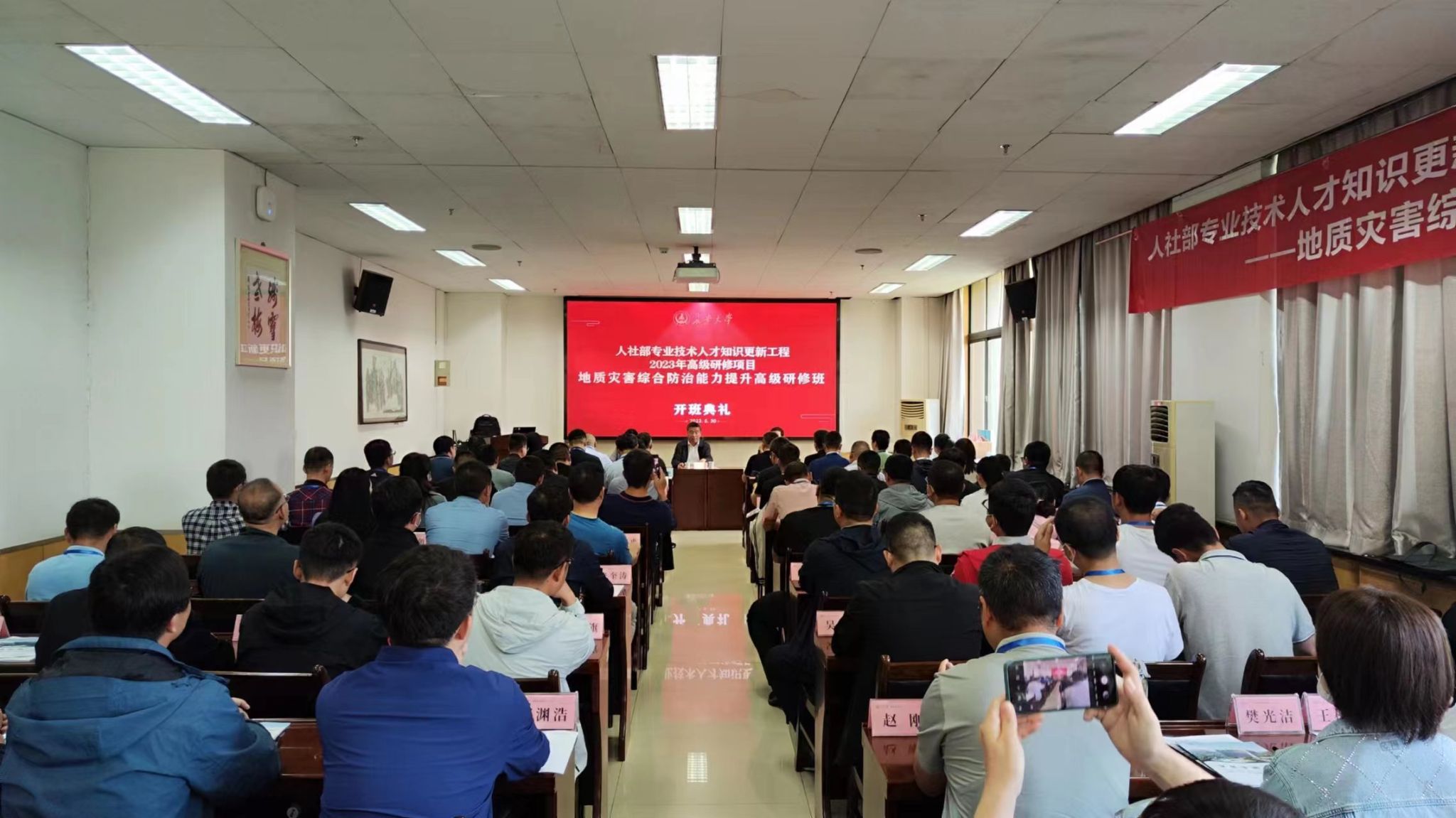 5月30日上午,由陕西省人力资源和社会保障厅主办、KY.COM承办的人社部专业技术人才知识更新工程2023年高级研修项目“地质灾害综合防治能力提升”高级研修班在KY.COM交通科技大厦顺利开班,来自全国14个省、自治区的74名相关行业领域中高层次专业技术人才和管理人员参加本次高级研修班的研修学习。陕西省人力资源和社会保障厅专业技术人员管理处副处长王锋,KY.COM党委常委、副校长范文出席开班仪式并讲话,仪式由KY.COM继续教育学院办公室主任崔合月主持。