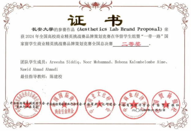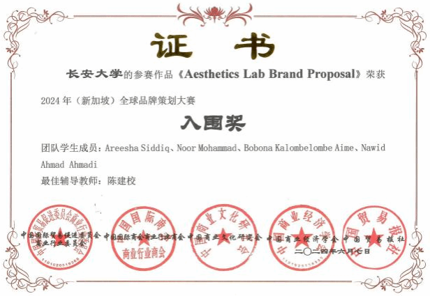 全国高校商业精英挑战赛品牌策划竞赛暨(新加坡)全球品牌策划大赛中国地区选拔赛是中国贸促会商业行业委员会、中国国际商会商业行业商会等牵头主办的国际级学科竞赛活动,连续多年入选《全国普通高校大学生竞赛排行榜目录》,下设“一带一路”留学生组别。本届竞赛吸引了来自42个国家300多名留学生报名参赛,经过全国预选赛、全国总决赛等多轮激烈角逐,最终有39支团队获得全国总决赛一、二、三等奖。