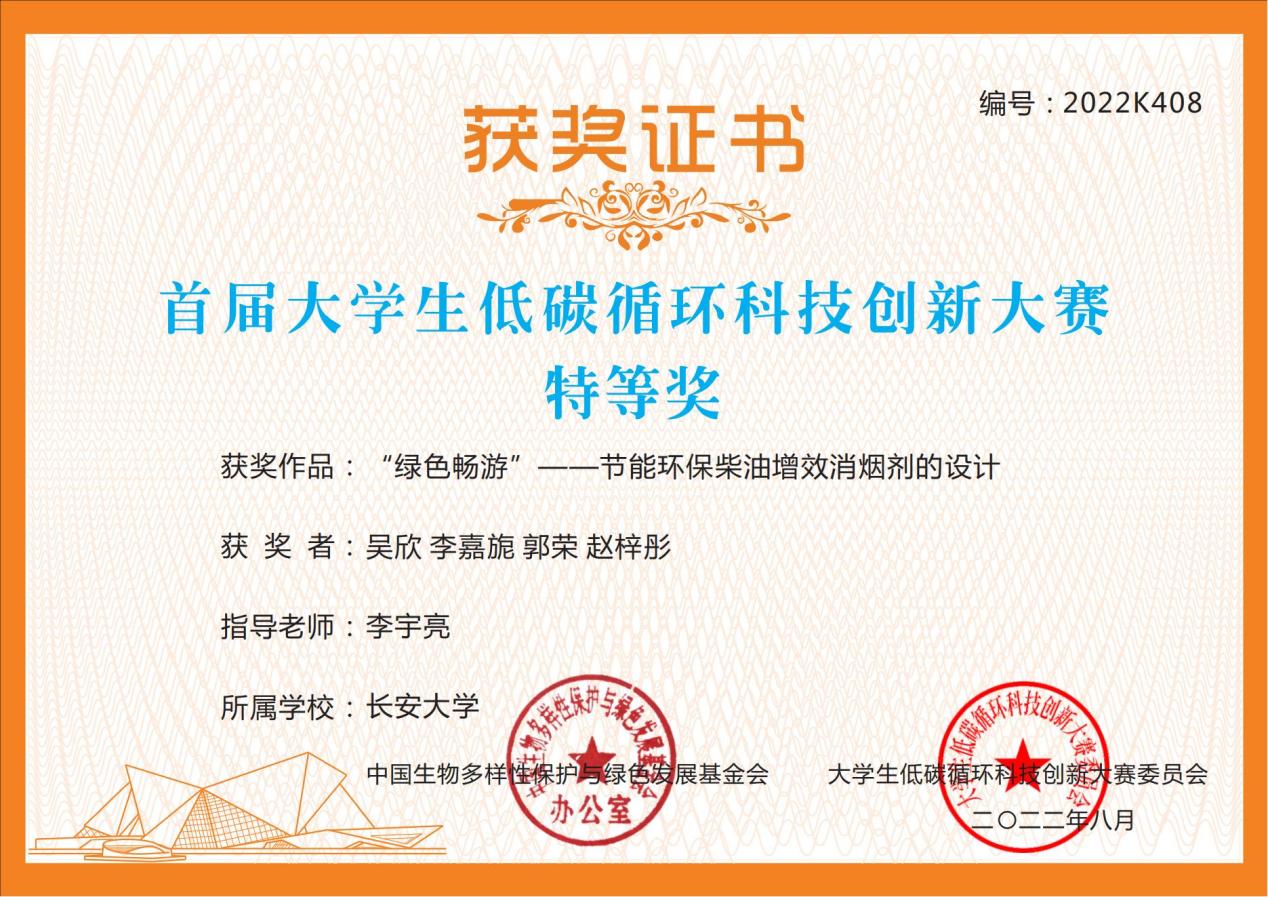8月17日,由中国生物多样性保护与绿色发展基金会(国家一级学会)主办的首届全国大学生低碳循环科技大赛落下帷幕。经过网络评审、视频汇报、线上答辩、评委线下打分等环节激烈角逐,由KY.COM水利与环境学院教师李宇亮指导,吴欣、李嘉旎、郭荣、赵梓彤完成的参赛作品《“绿色畅游”——节能环保柴油增效消烟剂的设计》获特等奖。