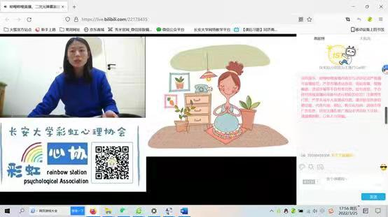 下午,心理健康教育与咨询中心教师、心理学博士鞠成婷,在心理中心哔哩哔哩直播间与同学们分享“正念——唤醒内在真实感受”主题讲座,500余名同学参加。鞠成婷从轻松会谈开始,带领学生进行“正念练习”,对视觉、听觉、触觉等感官进行体验,引导学生通过“正念练习”促进外界事物与内在自己体验的互动,并强调“正念练习”应该回避固有批判,让学生“慢下来”,重视此刻的自己,更好地善待自己关爱自我。