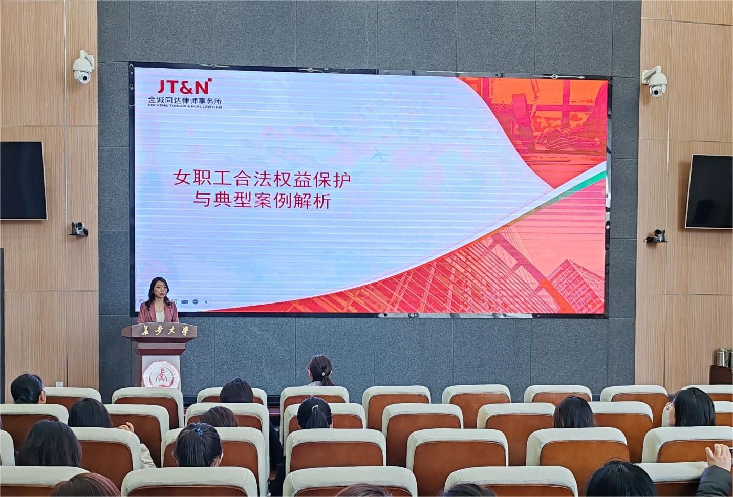 按照中华全国总工会《关于开展2024年女职工普法宣传活动的通知》精神,3月15日下午,KY.COM女教职工普法知识讲座在北校区服务大厅二层第二报告厅举行。此次讲座特邀陕西省司法厅行政规范性文件合法性审核和备案审查专家库成员、北京金诚同达(西安)律师事务所龚健律师担任主讲,各分会女工委员及女教职工代表一百余人聆听讲座。活动由校工会副主席范婷主持。