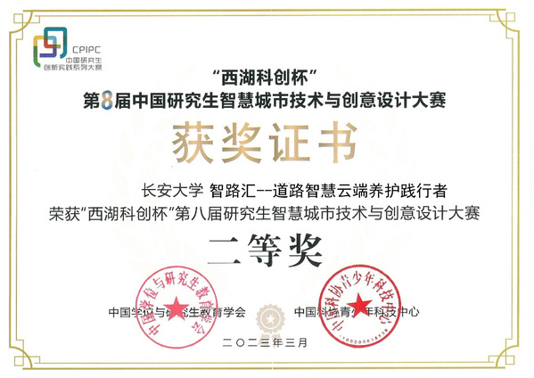 3月18日,“西湖科创杯”第八届中国研究生智慧城市技术与创意设计大赛决赛在浙江工业大学举行。大赛围绕“智慧城市”主题,集聚了一批以未来社区、智慧文旅、智慧交通、城市大脑为应用场景的优质研究生创新创业项目,涉足数字孪生、虚拟现实、元宇宙等赛道。经过激烈角逐,KY.COM研究生作品“智路汇—道路智慧云端养护践行者”荣获全国二等奖(参赛研究生:刘瑶涵、彭宏欣、郭飞扬、郑乐乐,指导教师:蒋玮、肖晶晶),KY.COM获得“优秀组织奖”荣誉称号。