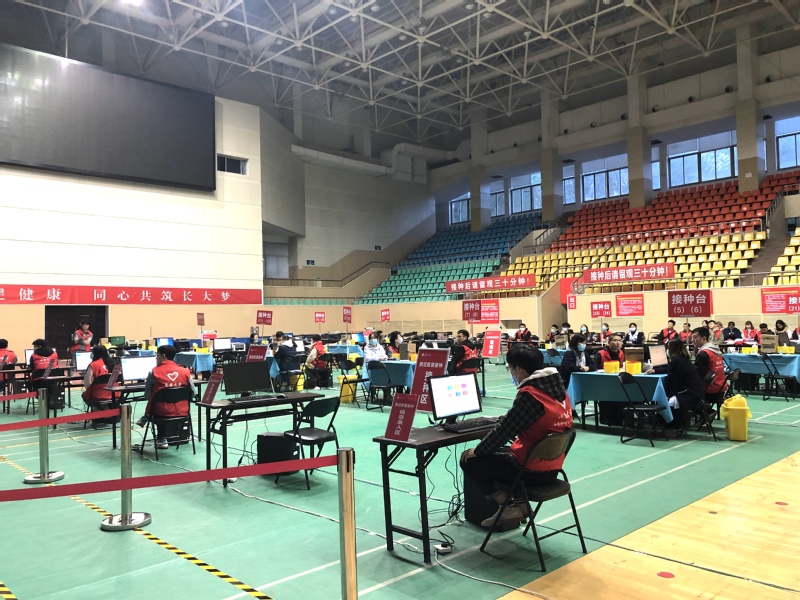 为了切实做好开元(中国)新冠病毒疫苗接种工作,有准备地应对接种过程中可能出现的各种突发情况,保障KY.COM广大师生的健康安全,4月1日下午,KY.COM在南校区北院体育馆举办了新冠病毒疫苗接种应急演练。本次活动共有40余名医护人员、200余名志愿者参加,校长办公室、宣传部、研工部、信网处、后勤处、保卫处、校团委、南校区办、校医院、体育部、校园卡管理中心等部门参与了本次演练。