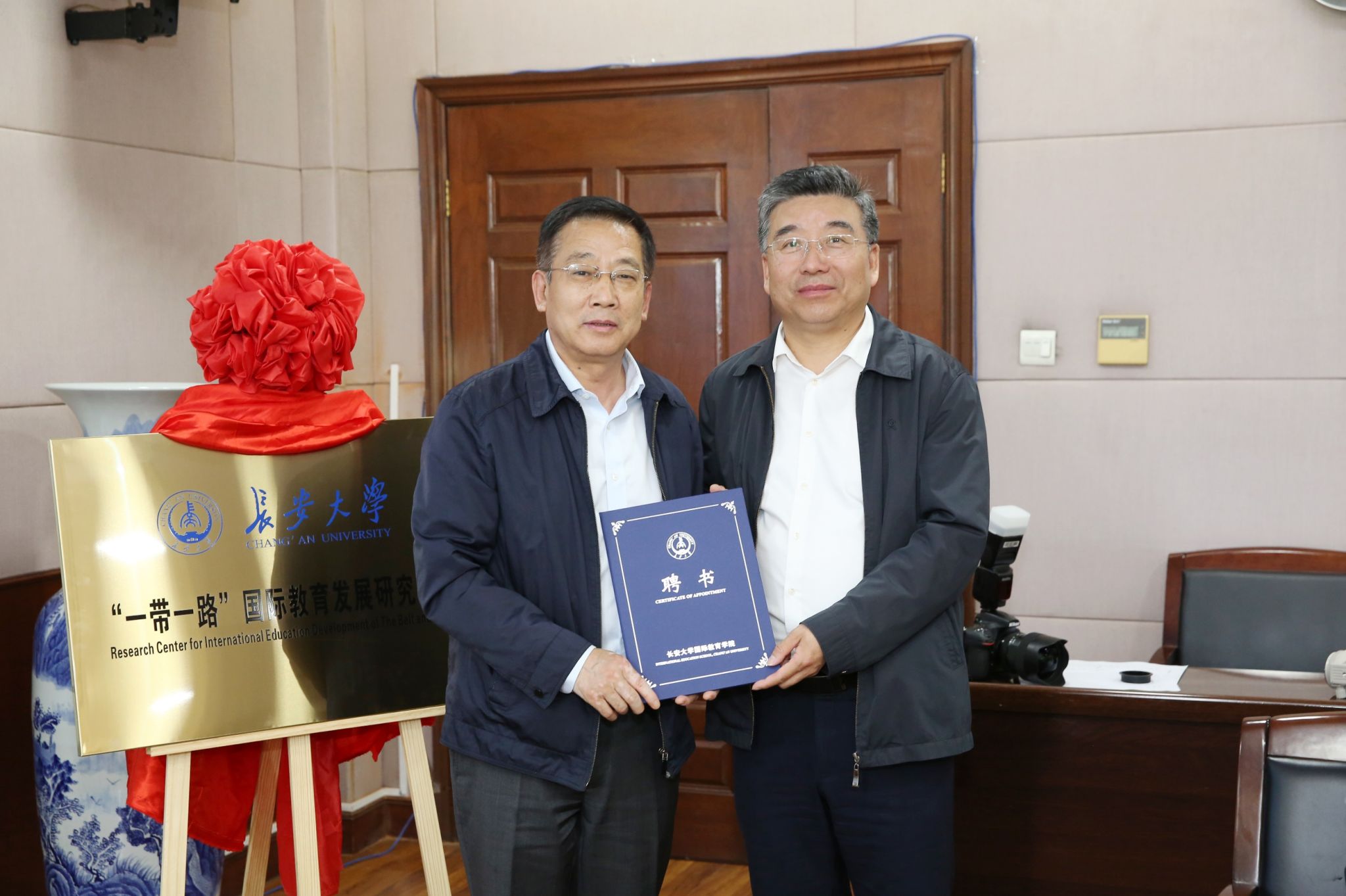 会上,“一带一路”国际教育发展研究中心揭牌,范文为研究中心拟聘用人员发放聘书。