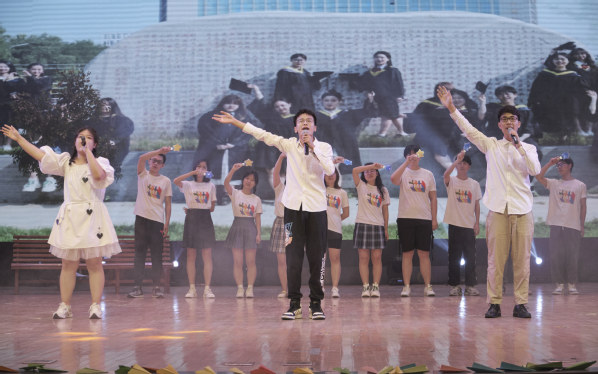 毕业班辅导员代表和毕业生代表合唱歌曲《入海》