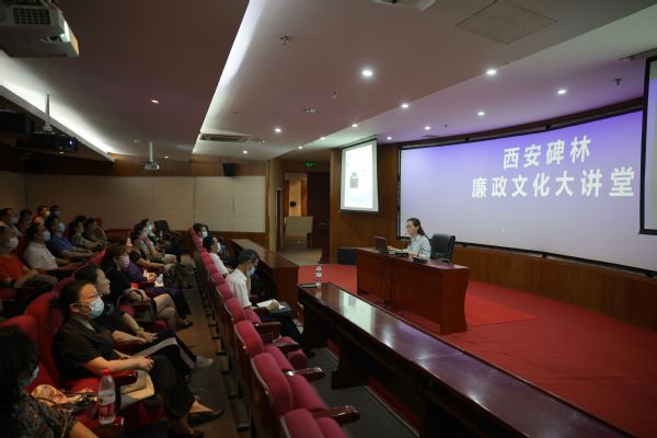 碑林博物馆党委书记周萍简要介绍了碑林博物馆和西安碑林廉政教育基地的基本情况。在廉政文化大讲堂,大家集中观看了廉政教育短片《清风正气,镂石成金》。西安碑林博物馆研究员景亚鹂讲授了《儒有澡身而浴德》廉政文化课程,课程内容图文并茂,经典故事丰富生动,引人深思,发人深省。