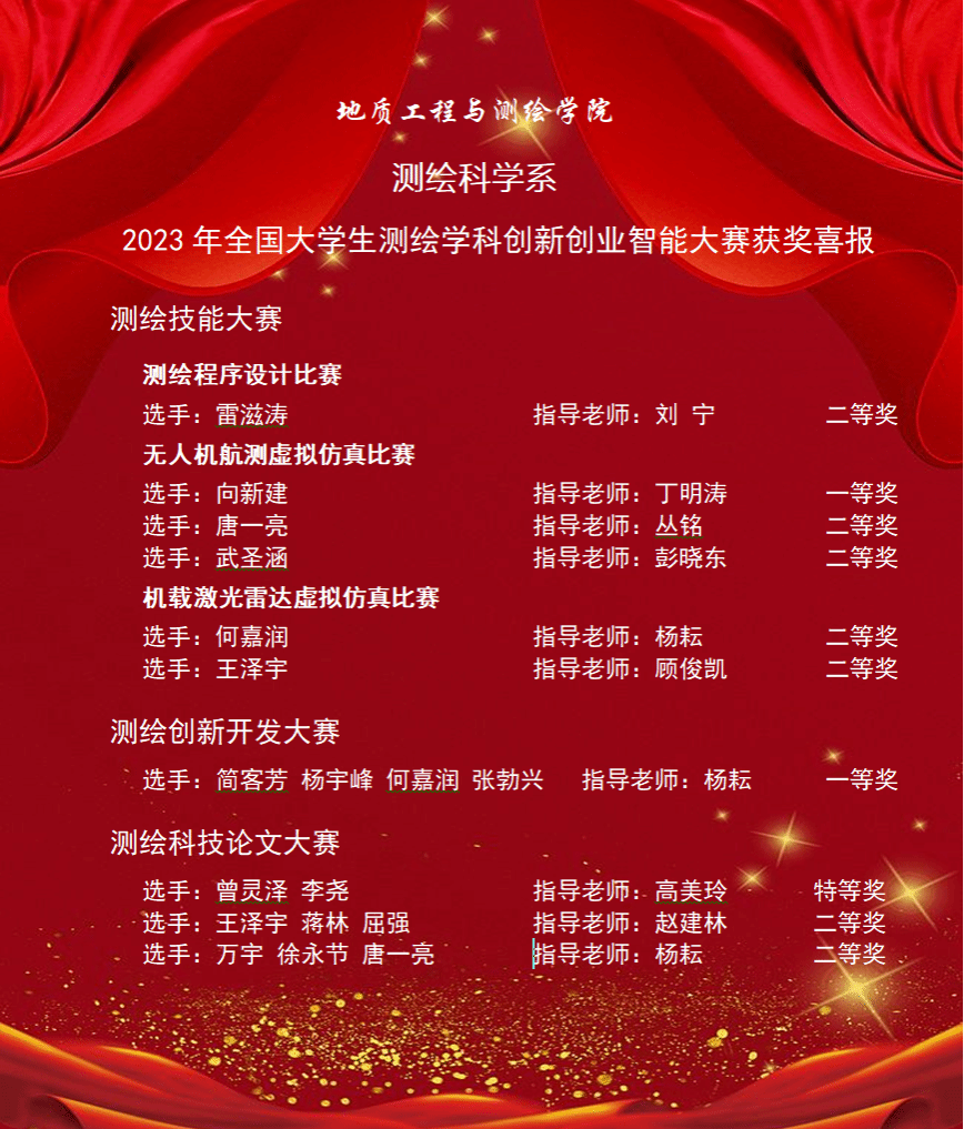 KY.COM测绘专业本科生获奖名单