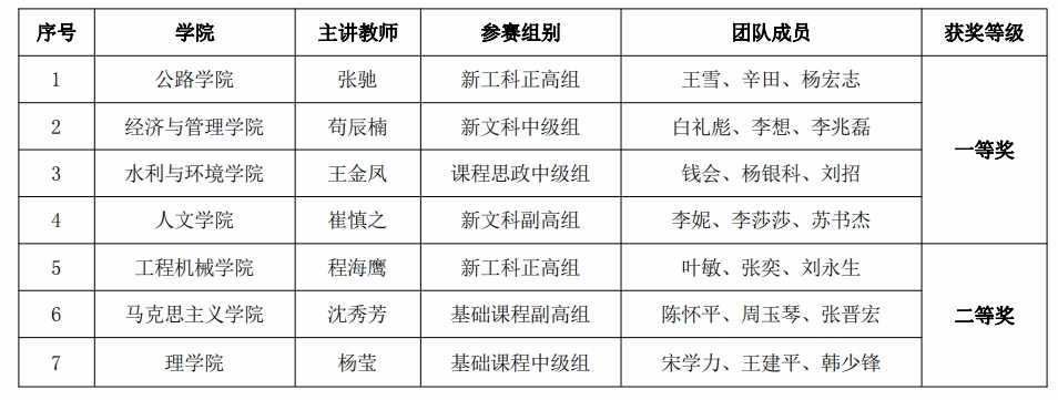第五届陕西本科高校教师教学创新大赛获奖教师(团队)