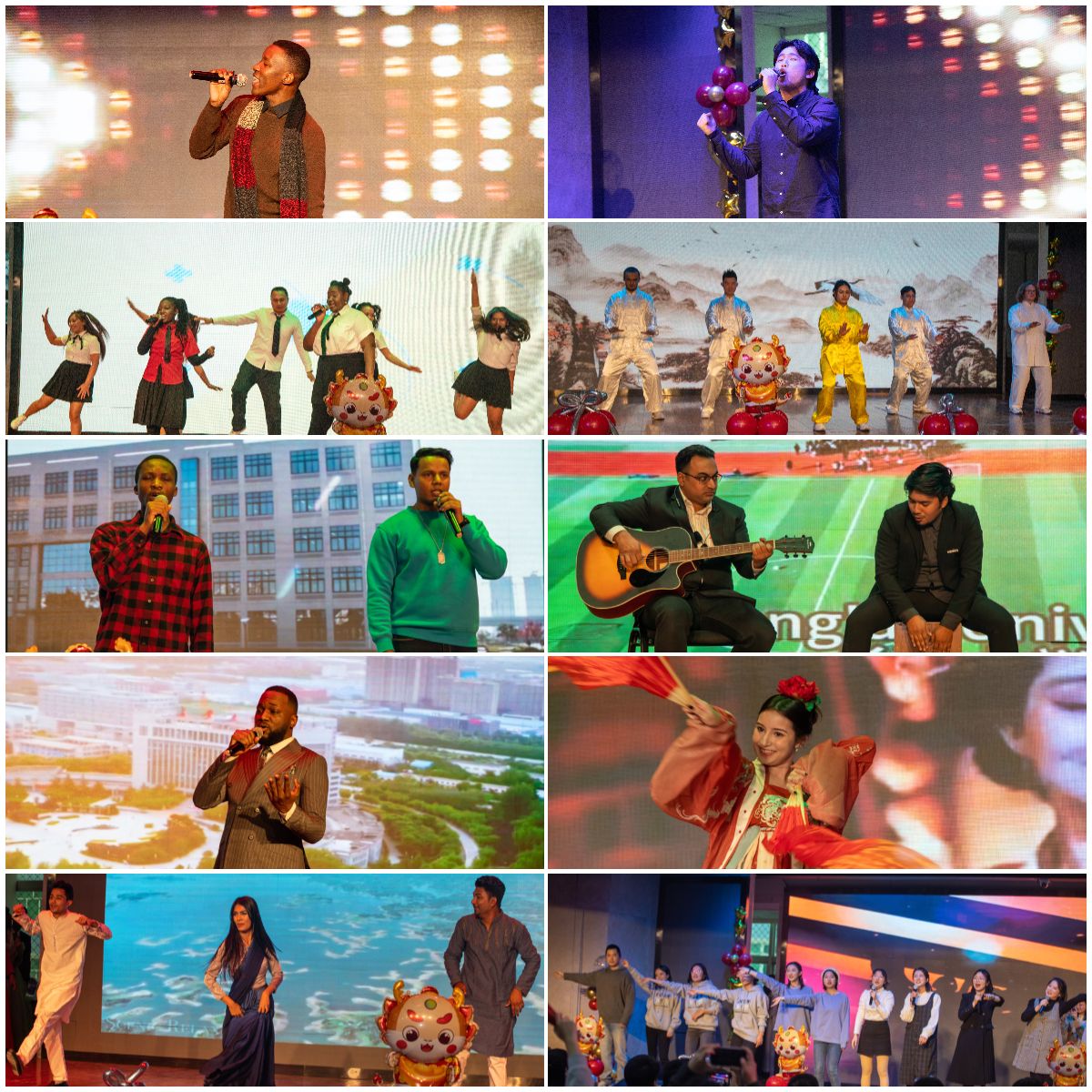 颁奖典礼后,中外师生带来了精彩的文艺演出。演出在歌舞表演《最好的我们》中拉开序幕,来自乌兹别克斯坦、俄罗斯、摩洛哥、孟加拉、卢旺达等国的国际学生通过歌曲、舞蹈、中国武术等方式呈现了各国文化的碰撞与交融,现场欢声笑语,精彩纷呈。