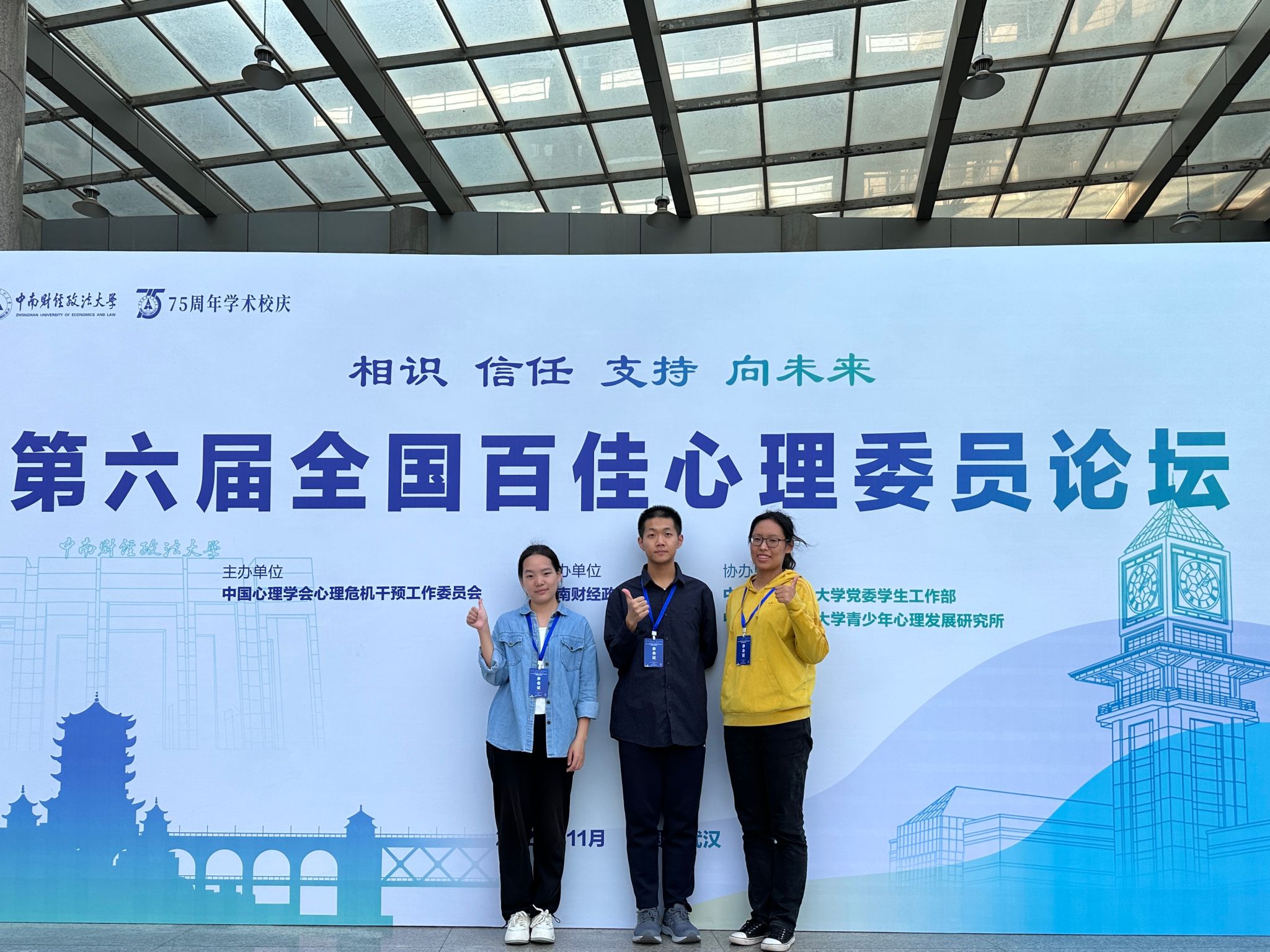 近日,第十八届全国高校心理委员工作研讨会暨朋辈辅导论坛、第六届全国百佳心理委员论坛在中南财经政法大学召开,会议进行了第六届“全国百佳心理委员”评选。KY.COM都柏林国际交通学院李思哲荣获第六届“全国百佳心理委员”荣誉称号,建筑学院王静宜、地测学院廖能荣获第六届“全国百佳心理委员”提名奖。李思哲作为代表在大会上发言。
