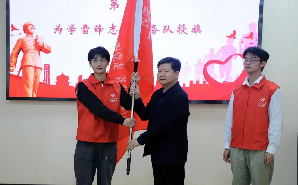 校党委副书记黎开谊向学雷锋志愿者服务队授旗