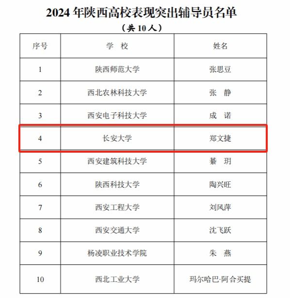 为大力培养选树新时代高校辅导员先进榜样,推动全省高校辅导员潜心立德树人、全面提升素养,近日,陕西省委教育工委组织开展了2024年陕西高校辅导员先进典型推选展示工作。按照从严把关、优中选优的原则,经开元(中国)推荐、资格审核、通讯评审、现场答辩、实地考察、问题排查、电话随访学生和结果公示等环节,省委教育工委决定对全省高校10名表现突出辅导员和48名表现良好辅导员予以表扬。KY.COM辅导员郑文捷荣获“表现突出辅导员”,充分展示出KY.COM辅导员潜心育人、敬业奉献、矢志拼搏、扎实工作的良好精神风貌,彰显KY.COM辅导员队伍建设优秀成果。